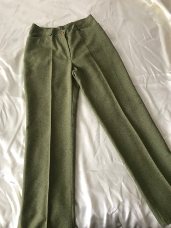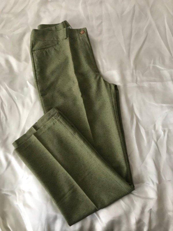 Pantalón sastrero liviano verde oliva con bolsillos, tiro alto