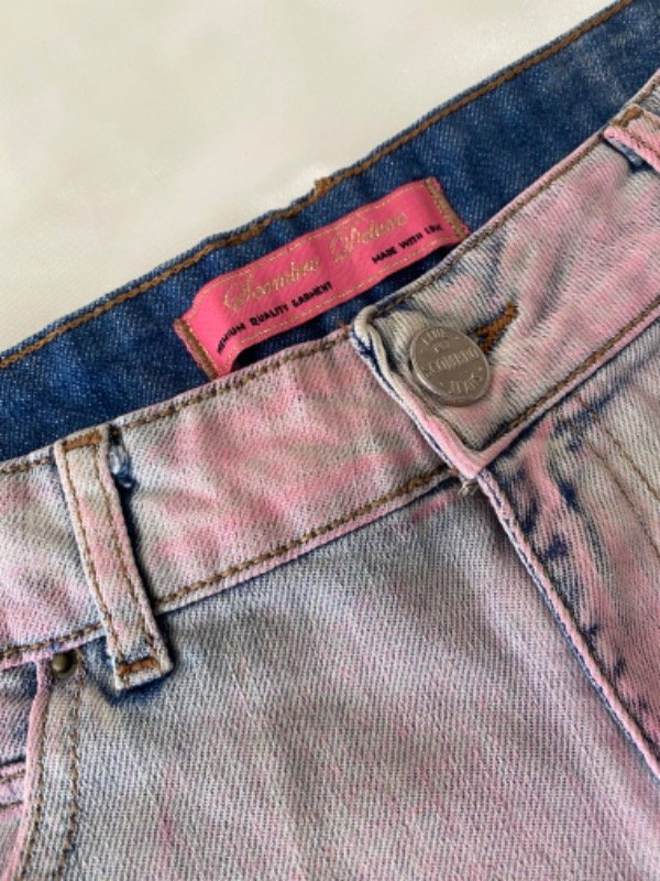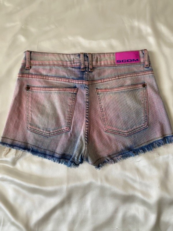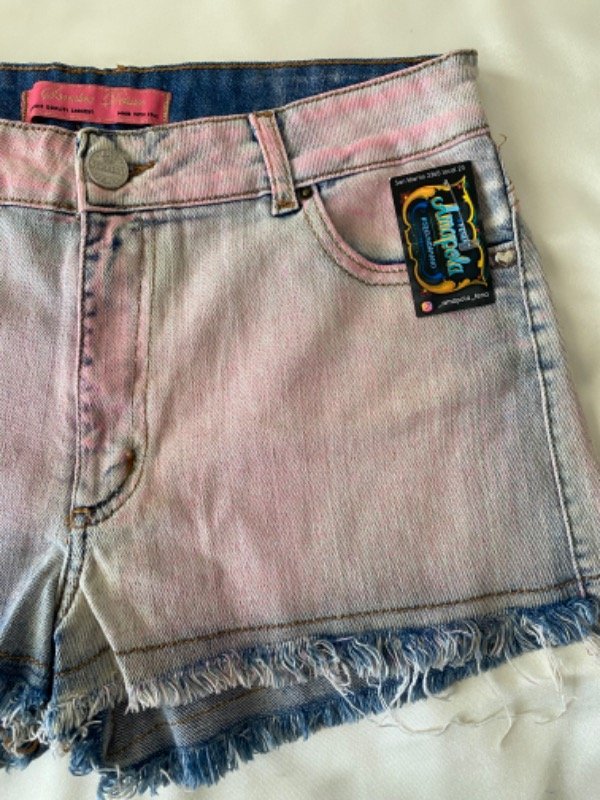 Medidas: contorno de cintura 75cm, de cadera 90cm, tiro delantero 25cm, largo 28cm