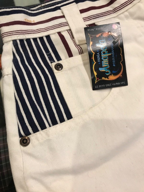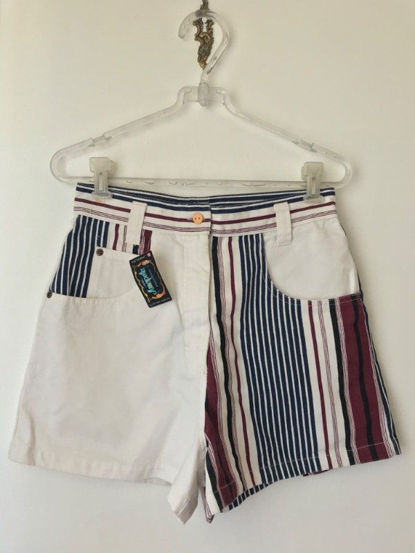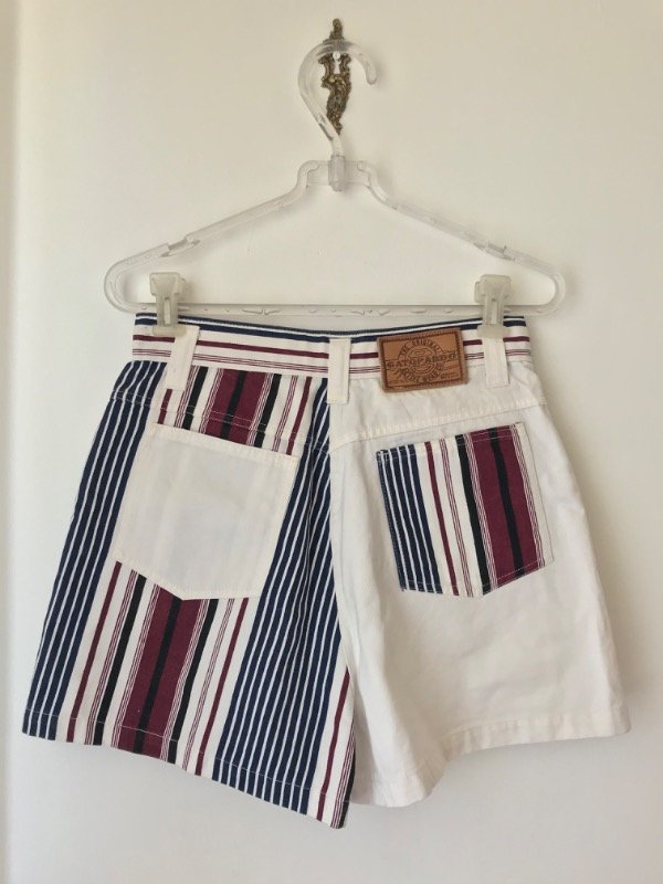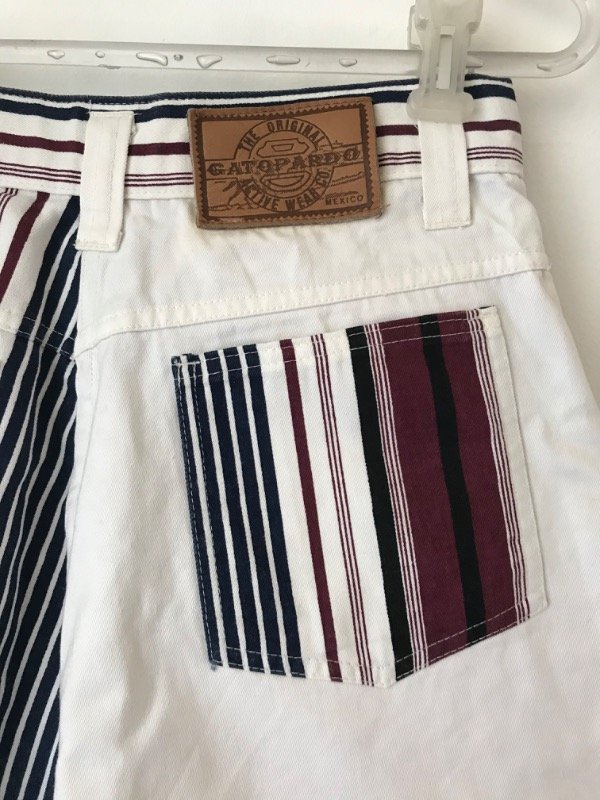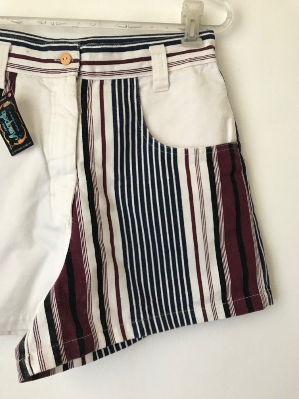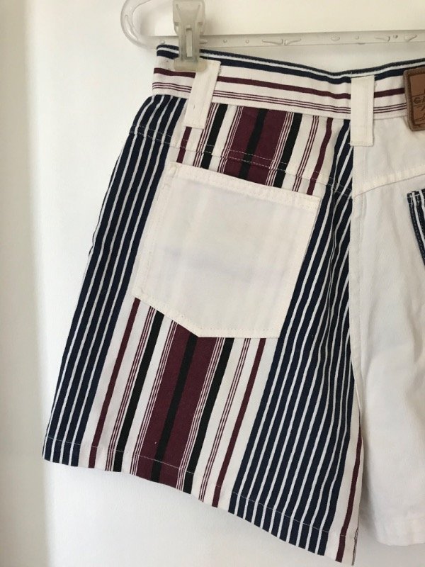 Short vintage rígido, rayado y liso combinado, con bolsillos talle 9 segun etiqueta puede ir para un 36/38 de jean