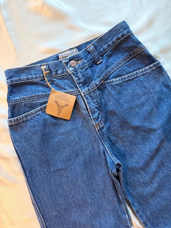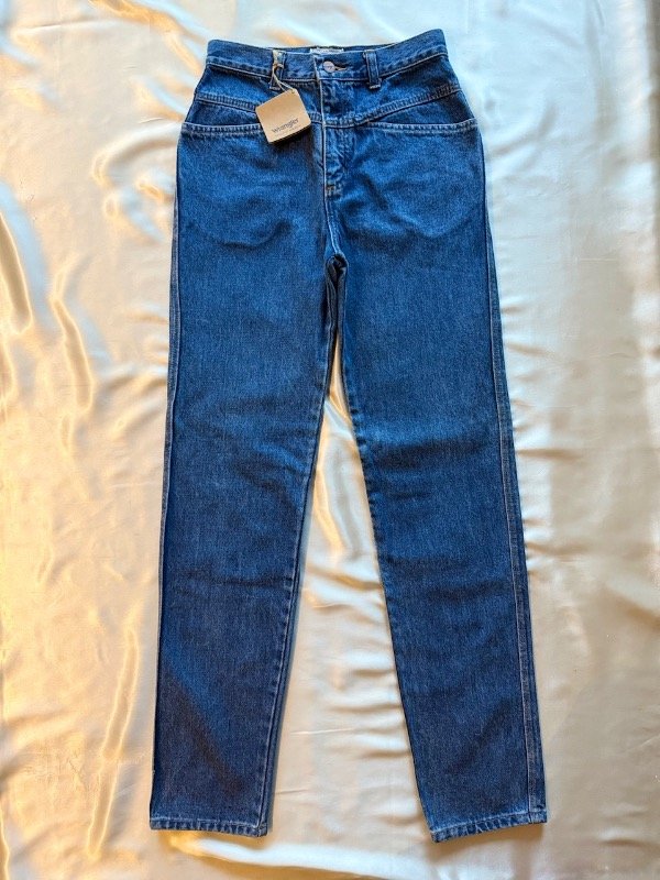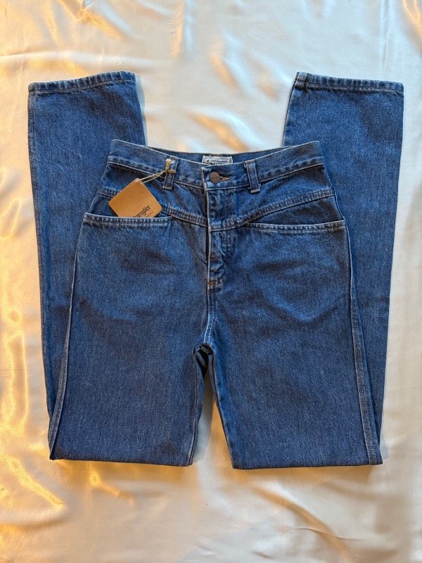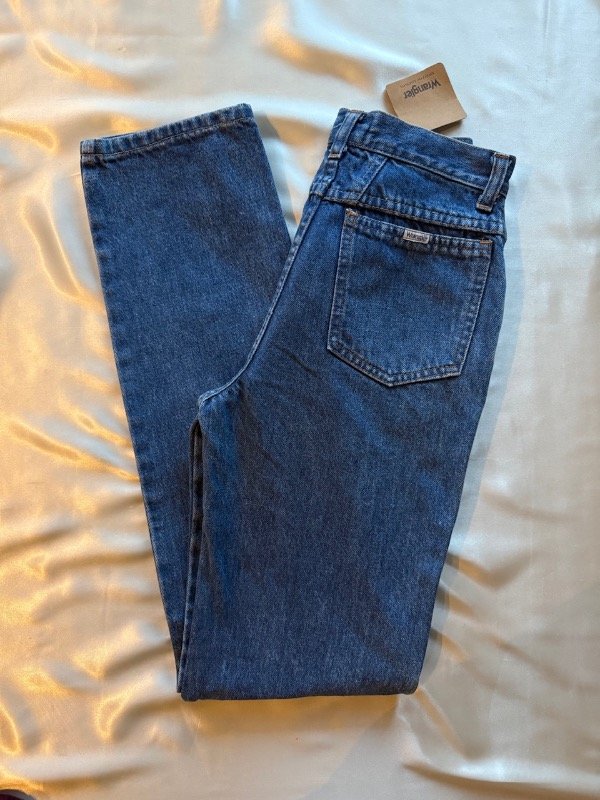 Jean Wrangler vintage a estrenar, este modelo es rígido como la mayoría, tiene canesú en cintura y bolsillos, costuras reforzadas, corte recto talle 24 aproximadamente