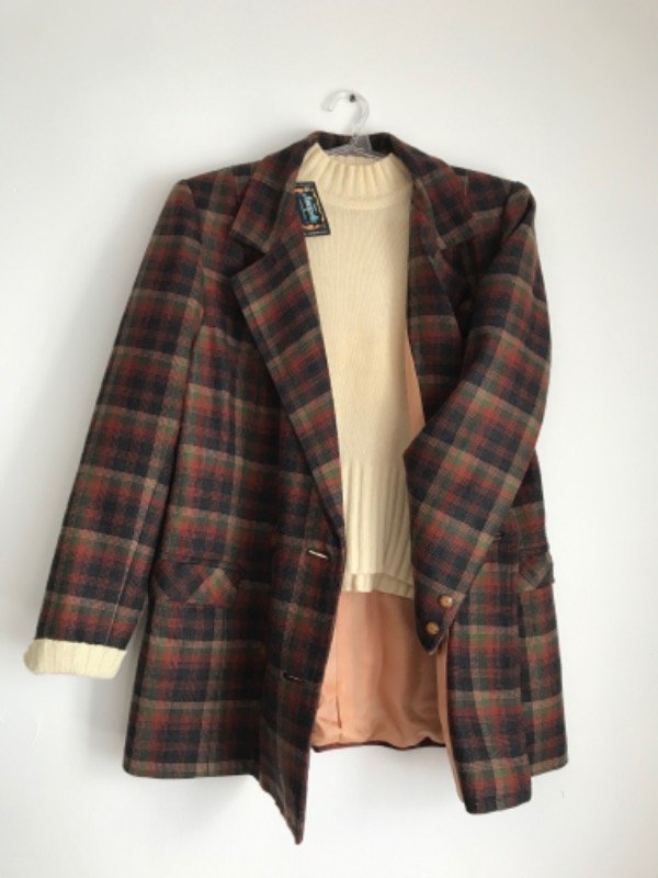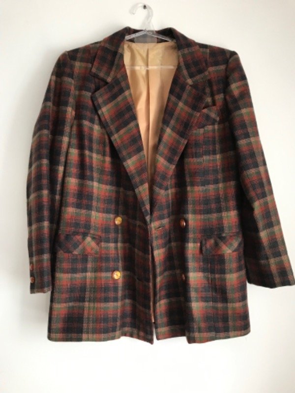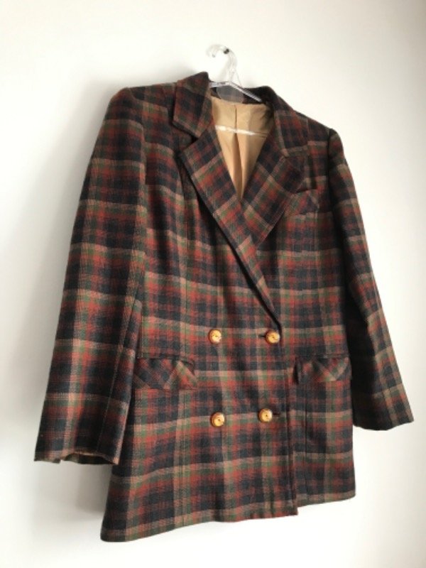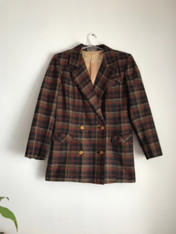 Blazer vintage escoces, forrado con bolsillos y cierre cruzado, no es oversize tampoco entallado, queda hermoso