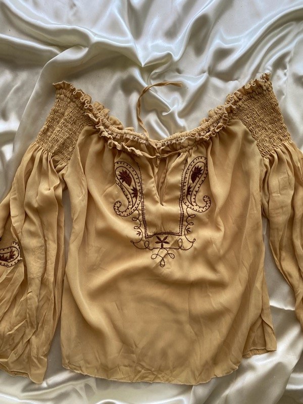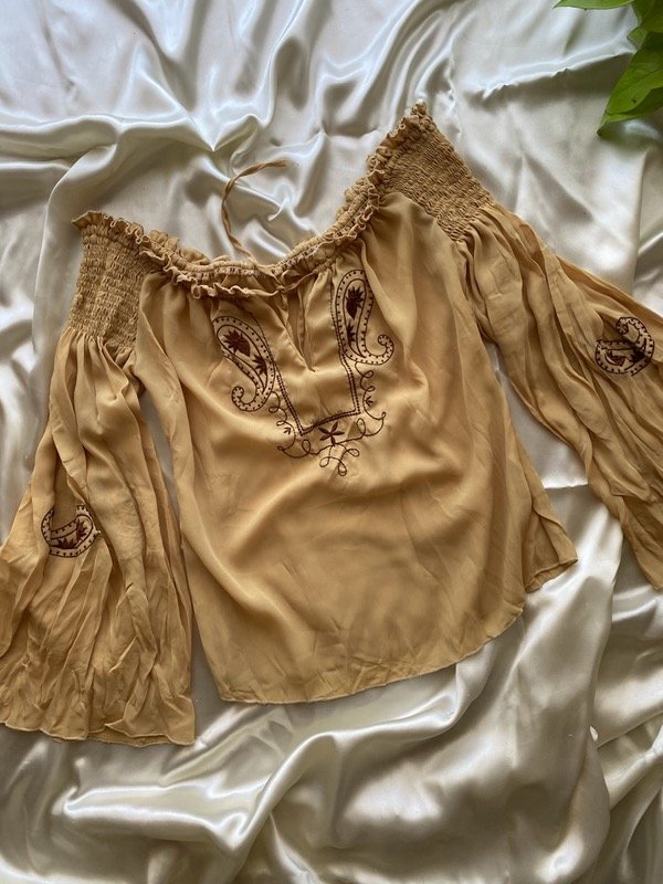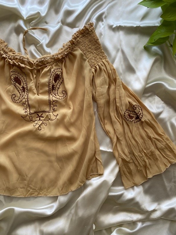 Blusa paisanita muy estilo fairy, bordada, con elástico en hombros y lazo para ajustar