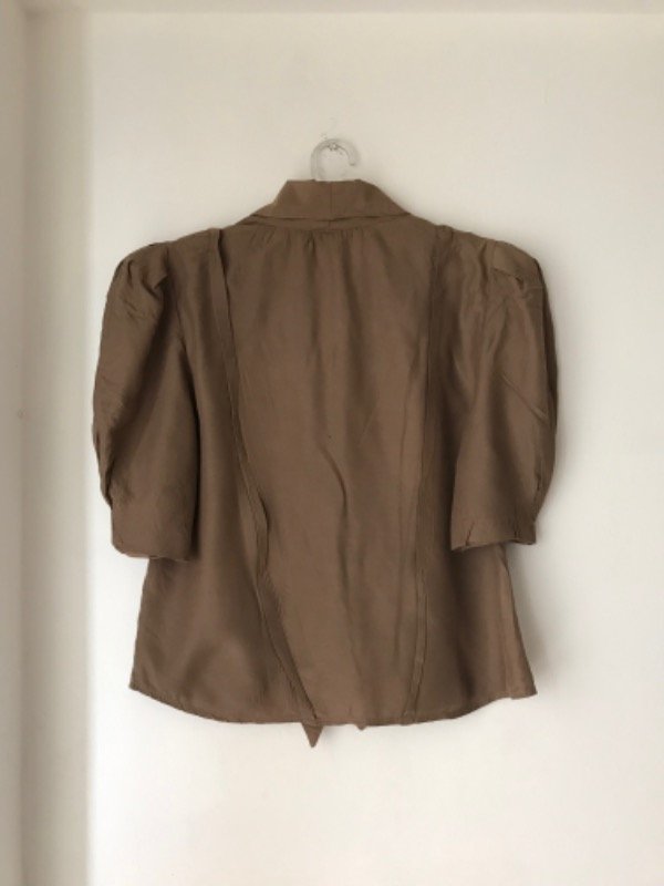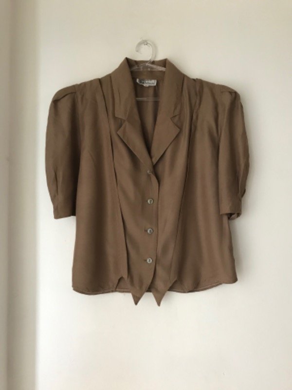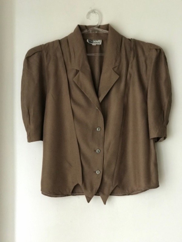 Camisa vintage PB, a la cintura con picos, manga con tabla q da volumen, hermosa tela