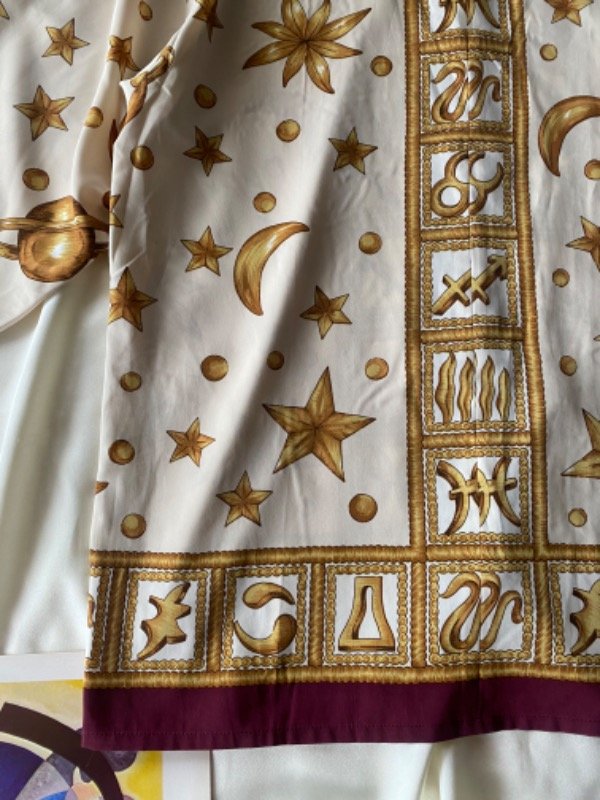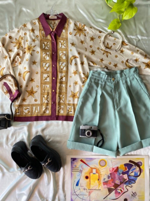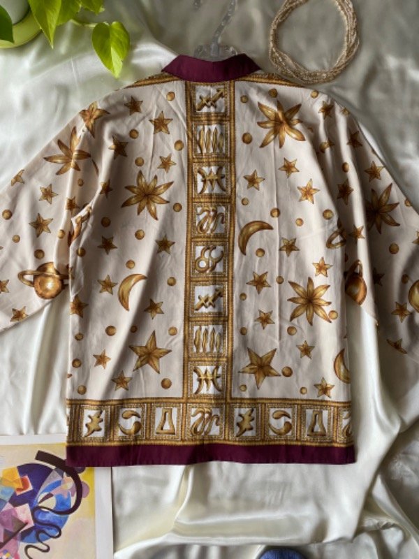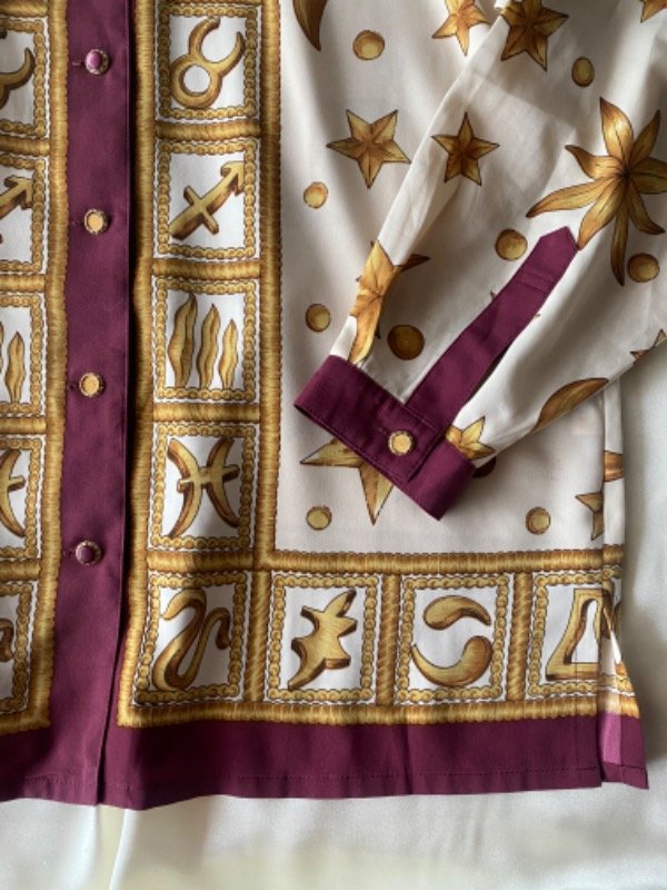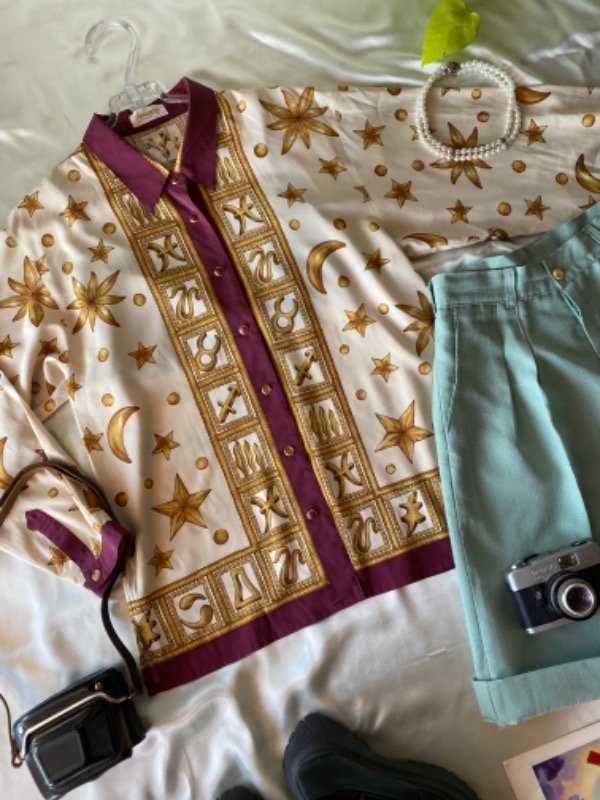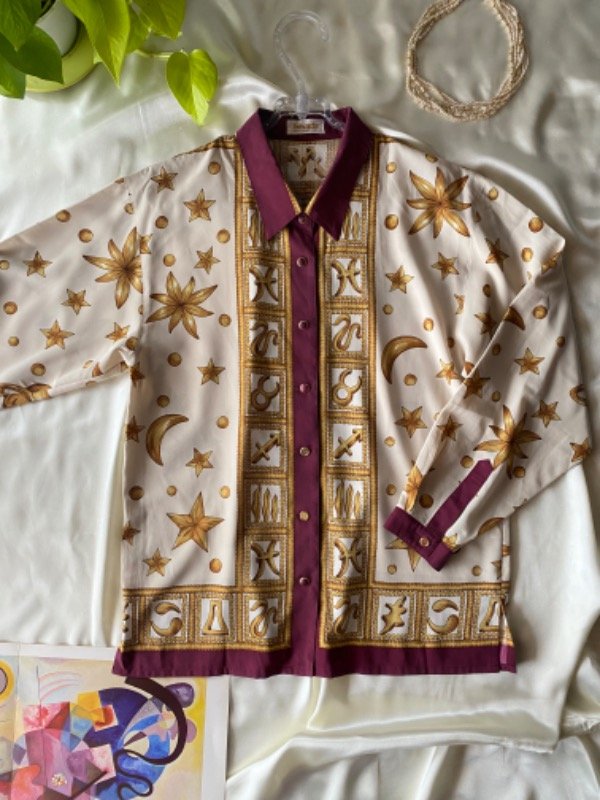 Camisa vintage con print del zodiaco mas borde y cuello en púrpura