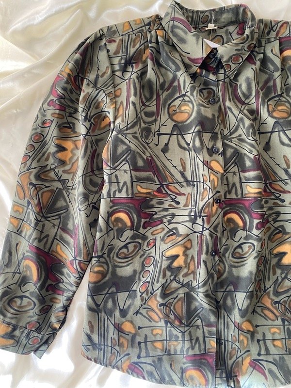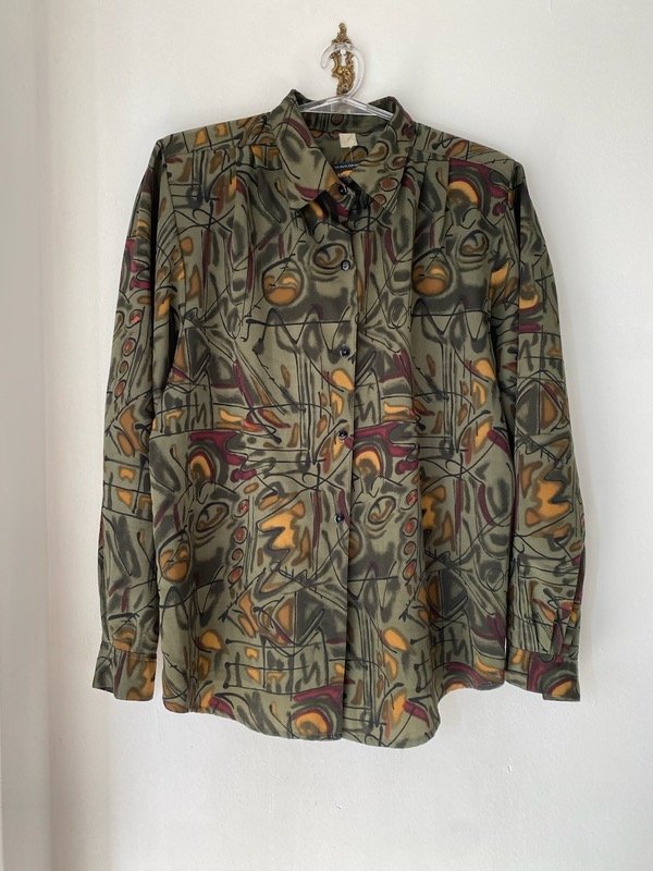 Camisa vintage estampada, tiene pinzas en hombros y hombreras faciles de sacar
