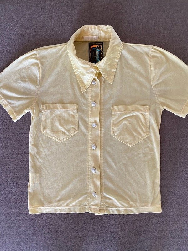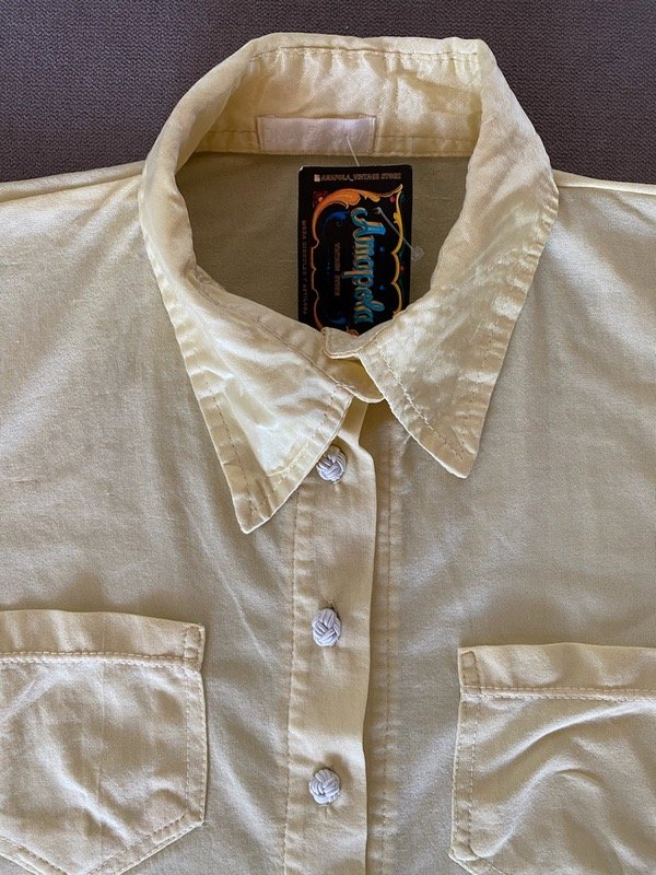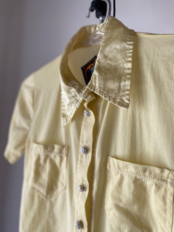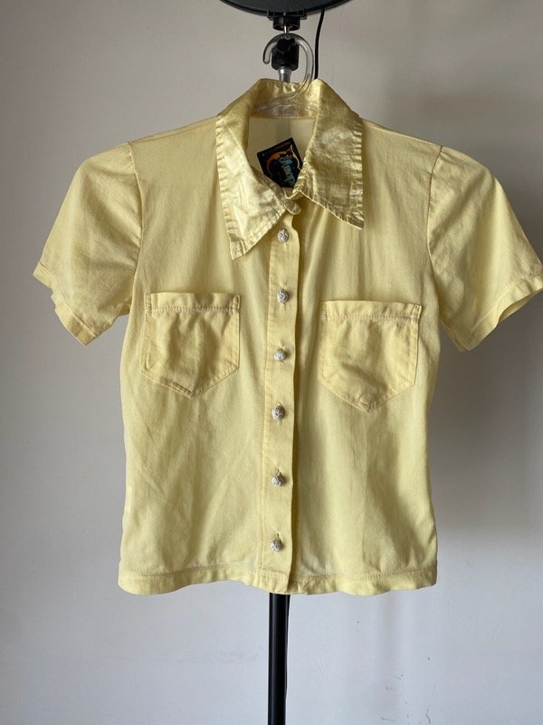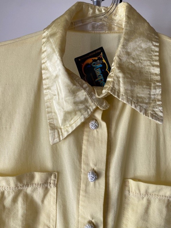 Camisita elastizada semi transparente amarilla Ona Saez , con cuello en raso y botones muy orientales,?talle 2 según etiqueta
