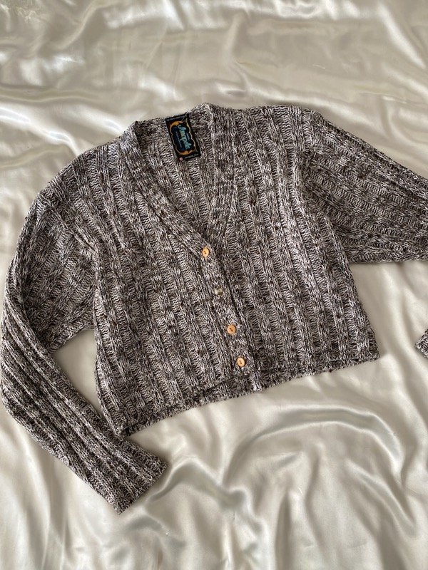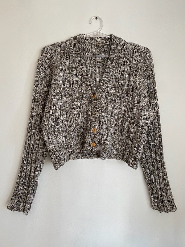 Cárdigan corto de lana jaspeada y botones (uno diferente)
