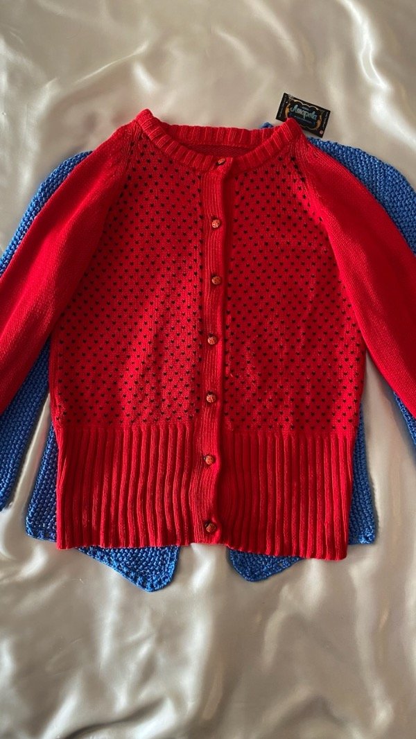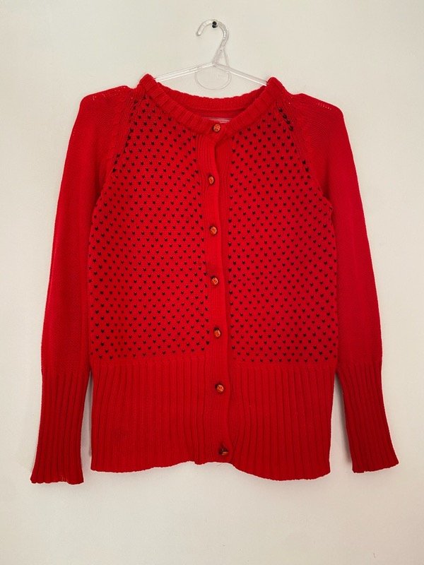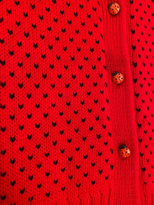 Cardigan de hilo con puntitos y botones en forma de vaquita de San Antonio