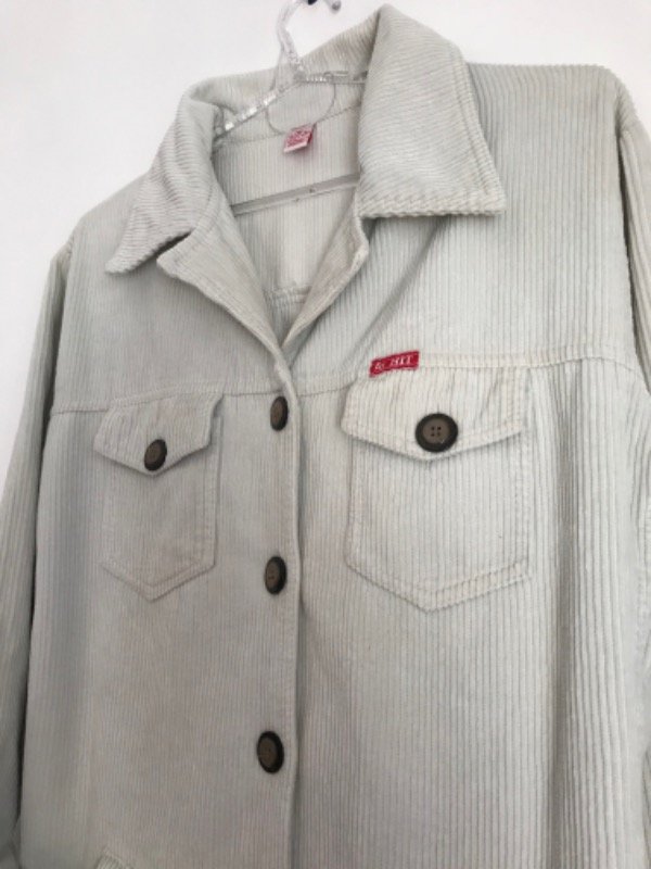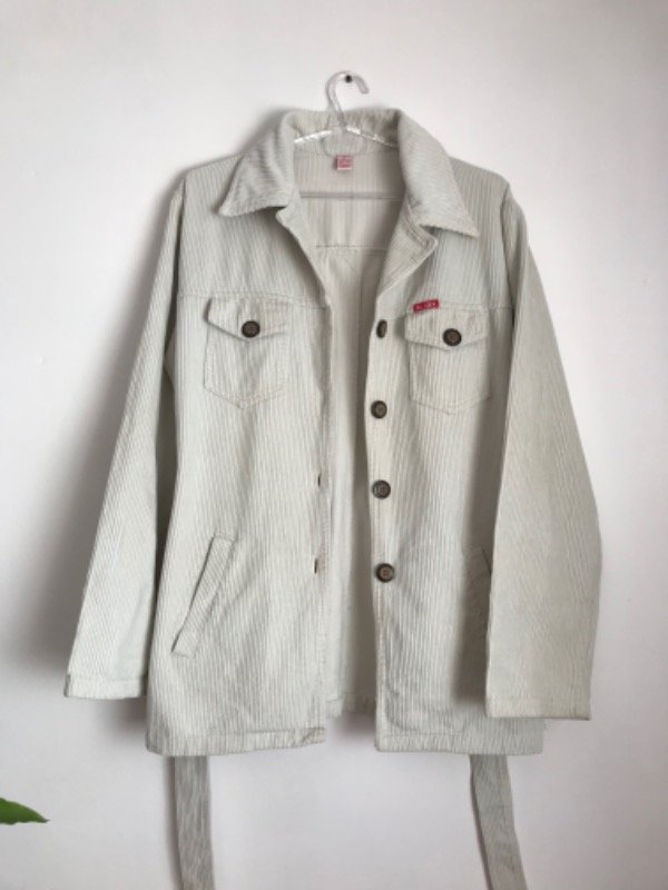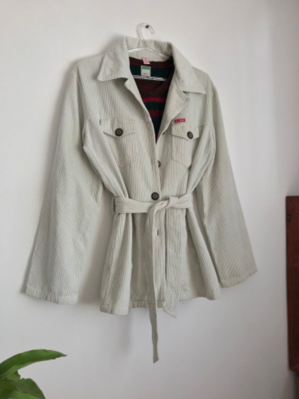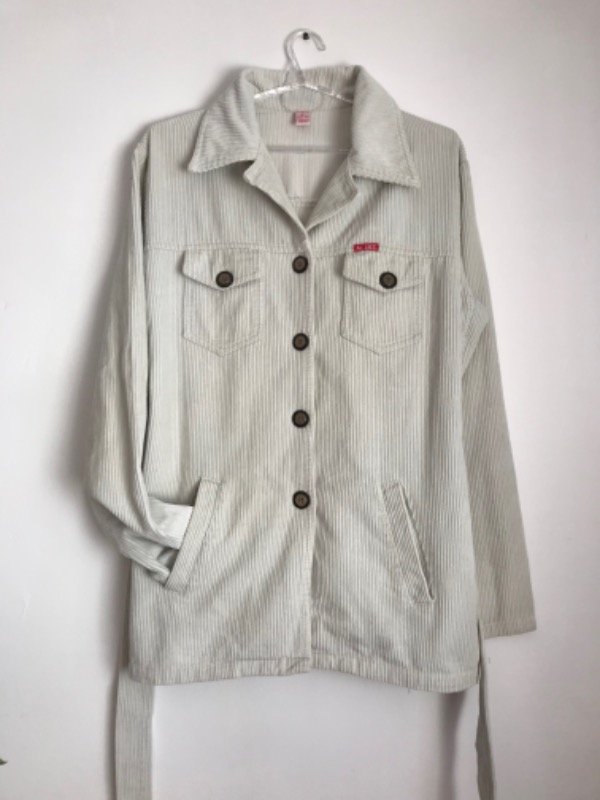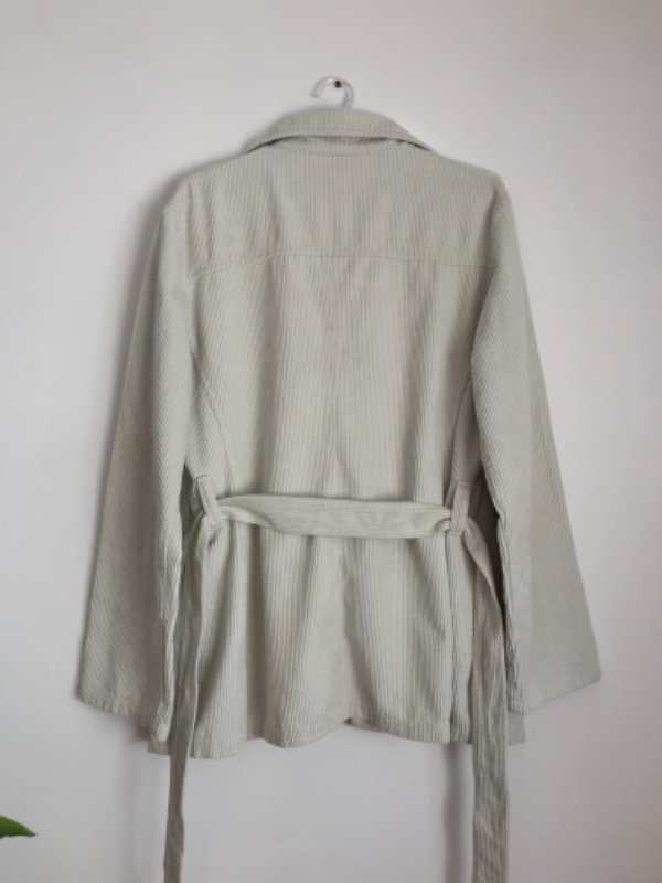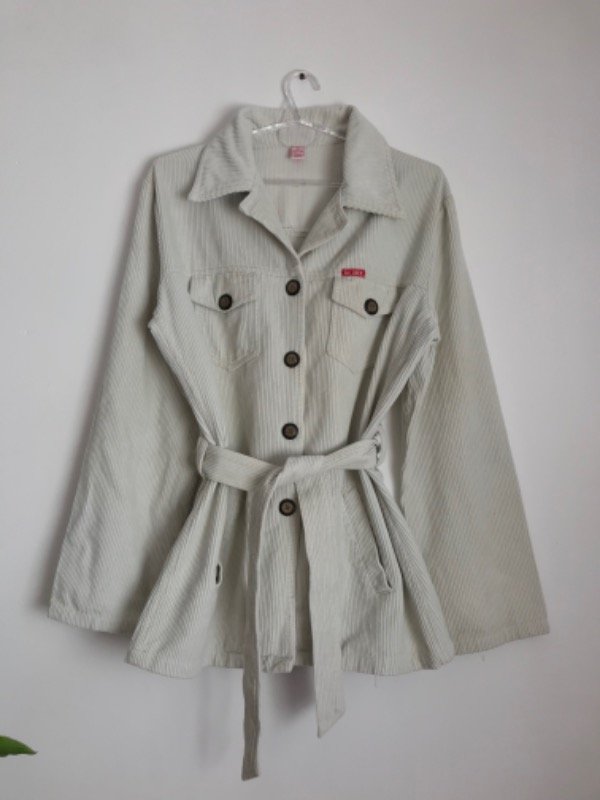 Chaqueta de corderoy simple, con cinturón y bolsillos, largo a la cadera
