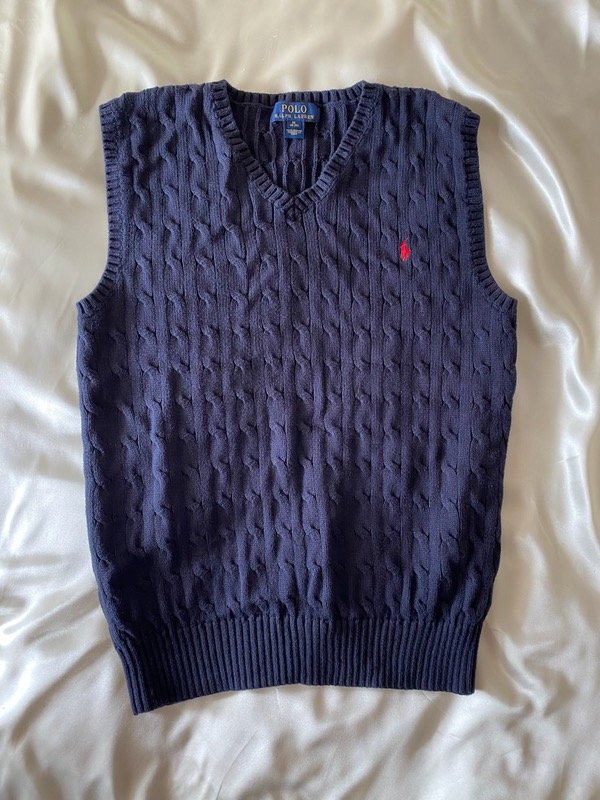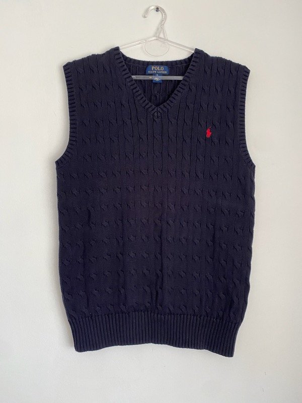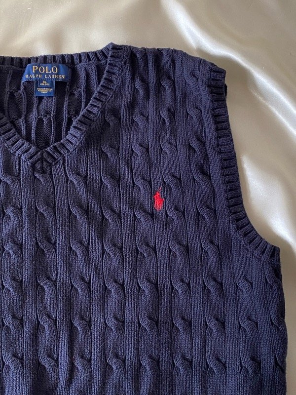 Chaleco tejido trenzado, original Polo Ralph Lauren, azul