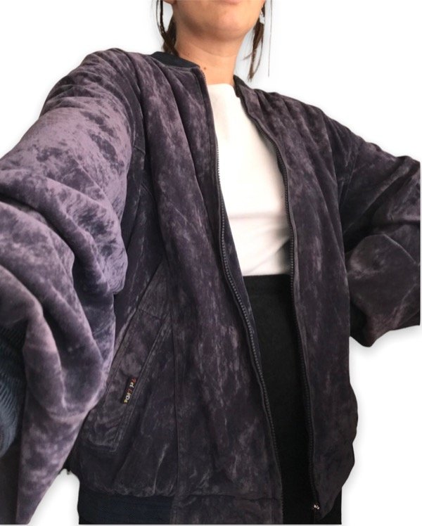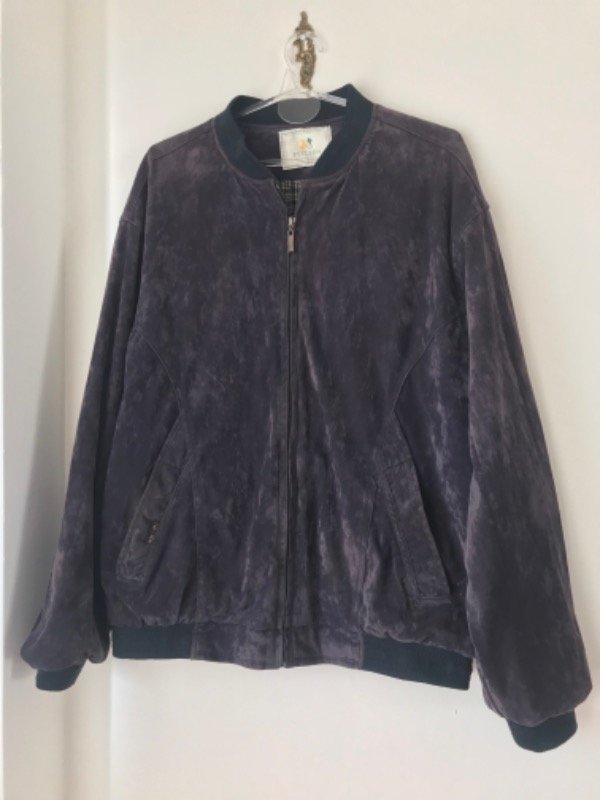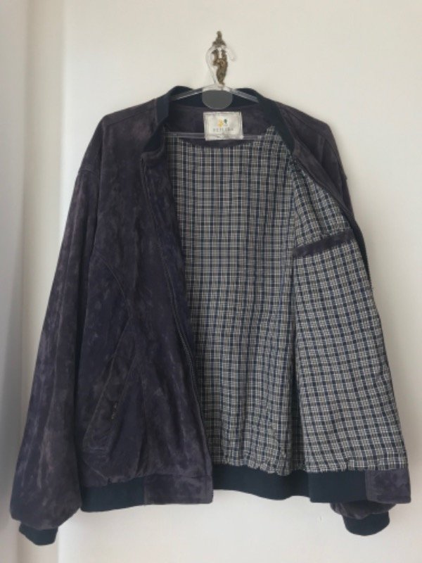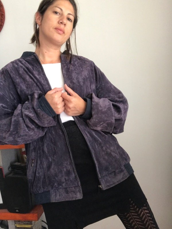 Bomber vintage talle XL gamizada tipo pana forrada con escocés, bolsillos internos y externos