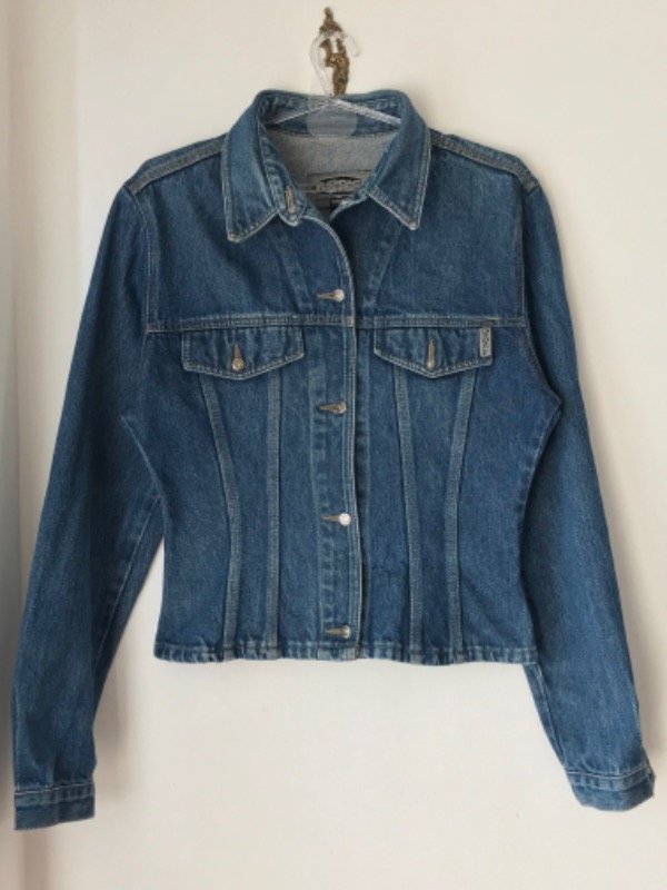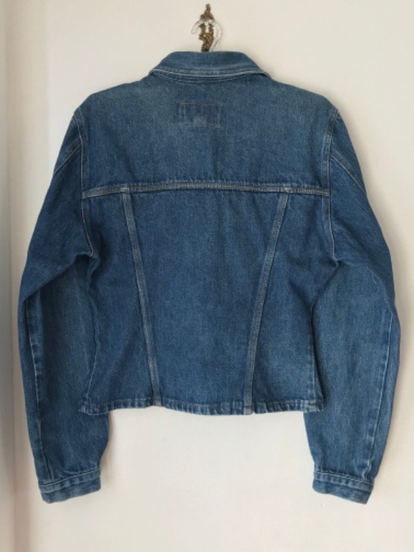Chaqueta de jean vintage, 90s, ancha de espalda pero entallada en cintura,
