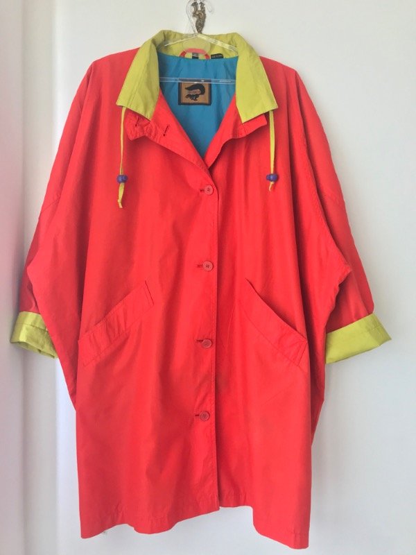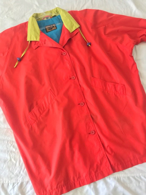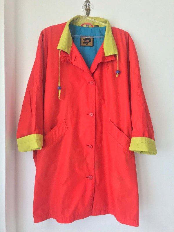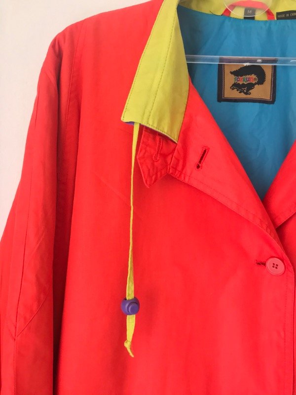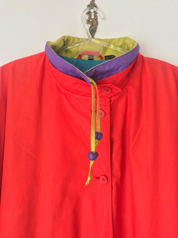 Piloto forrado buen ochentoso, no Impermeable, manga rangla combinado naranja, con interior turquesa, borde verde manzana y cuello interior violeta