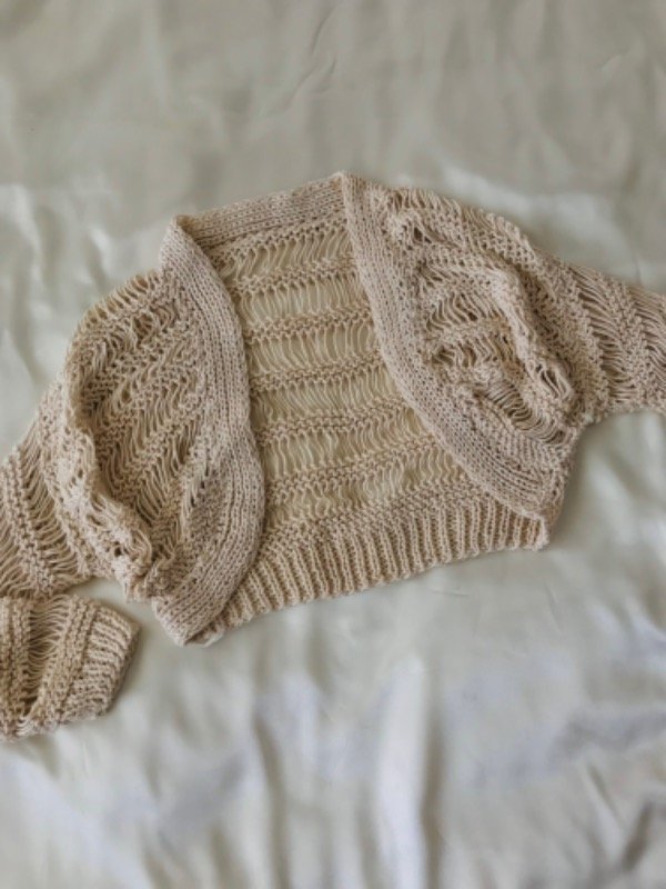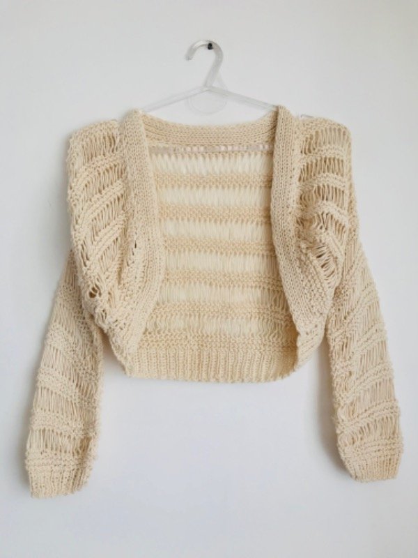 Manguitas también llamada torerita tejida a crochet en hilo de algodón color beige clarito