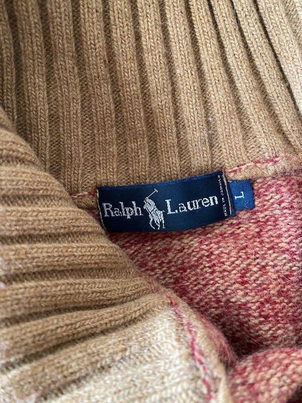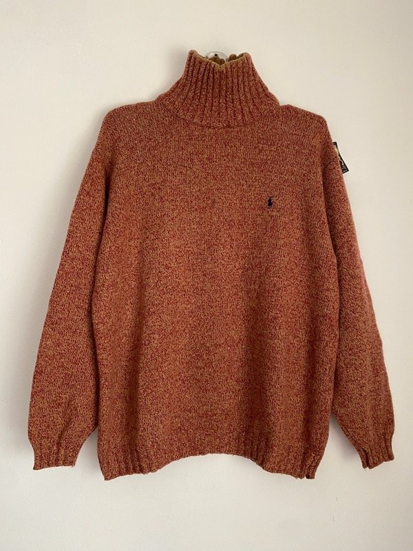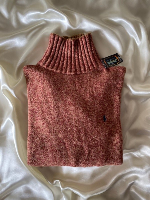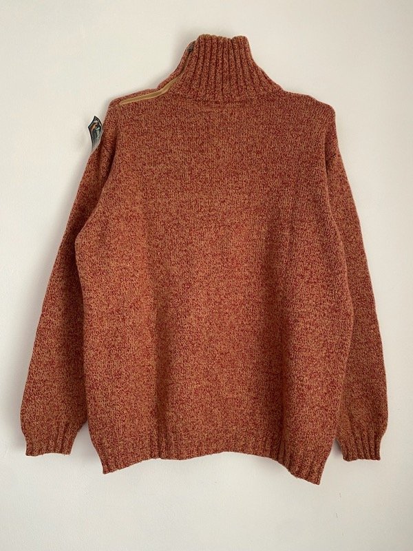 Polera 100% Lana natural jaspeada, con cierre en el cuello, talle L