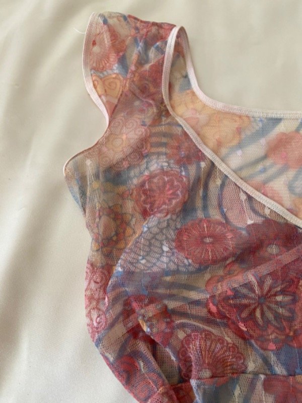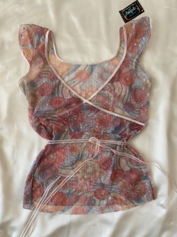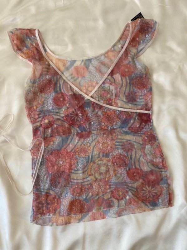 Remera de microtul estampada, elastizada, escote cruzado y lazo en cintura