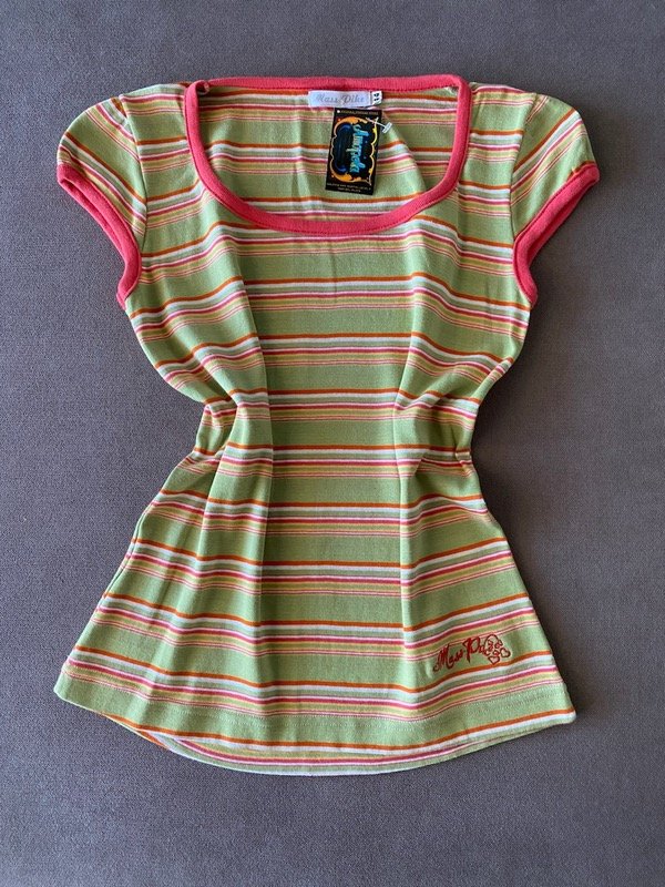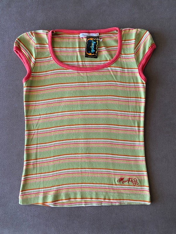 Remera de algodón rayado, con manguita, talle 44 según etiqueta