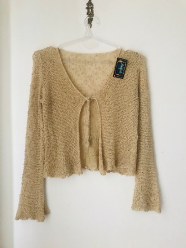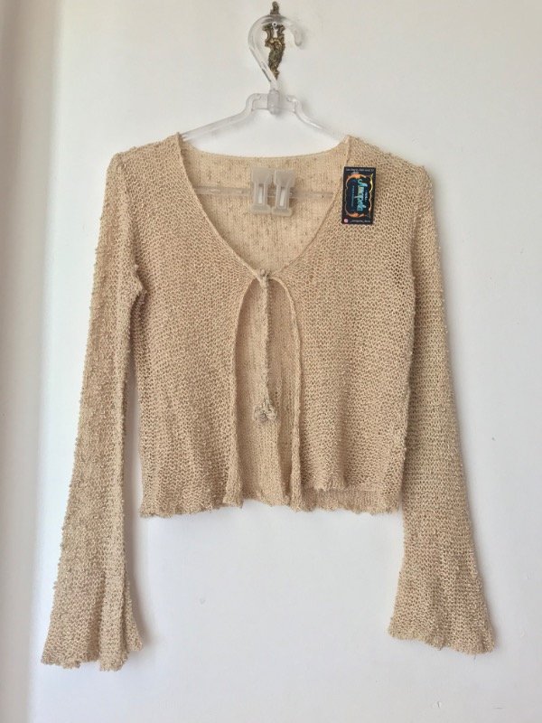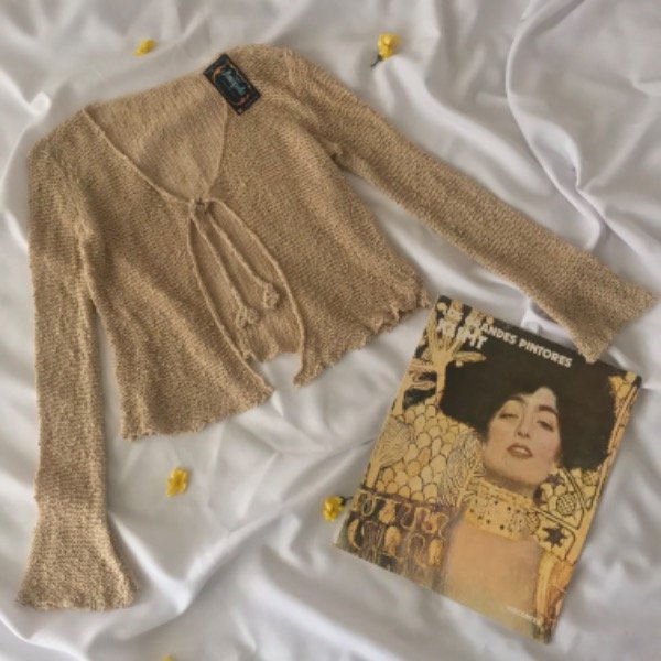 Saquito tejido a mano con hilo con nuditos, beige muy y2K