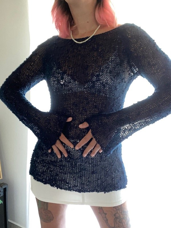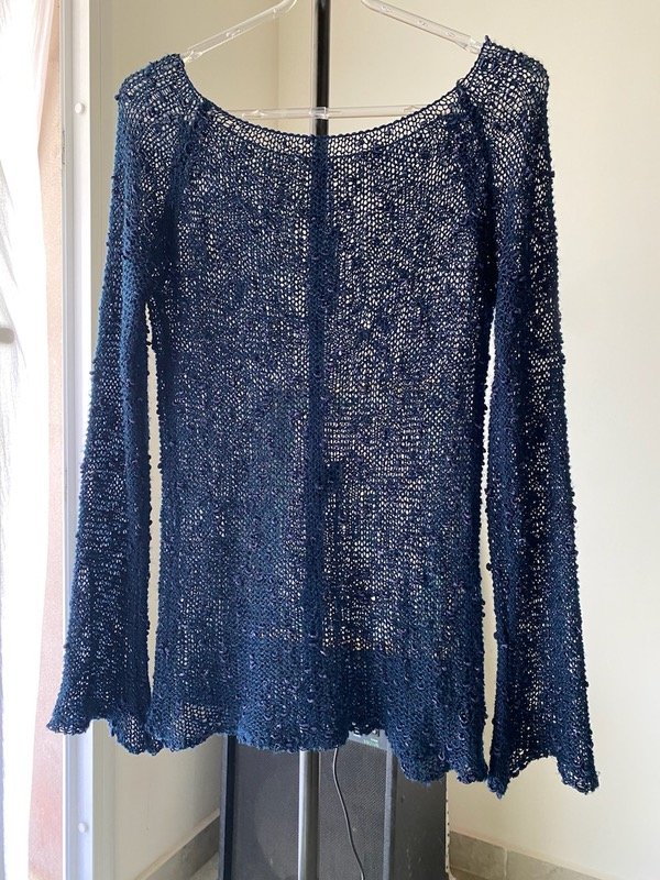 Sweater crochet azul, al cuerpo con mangas bien largas