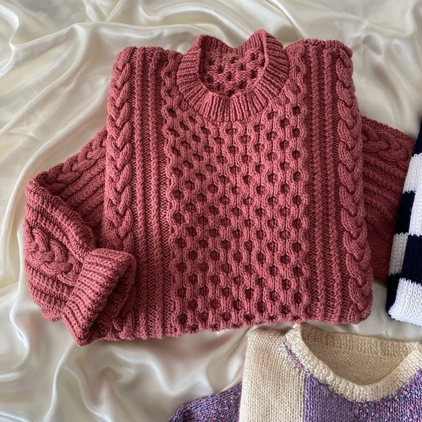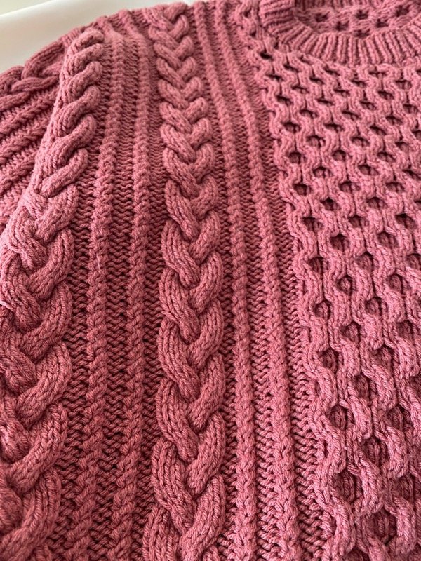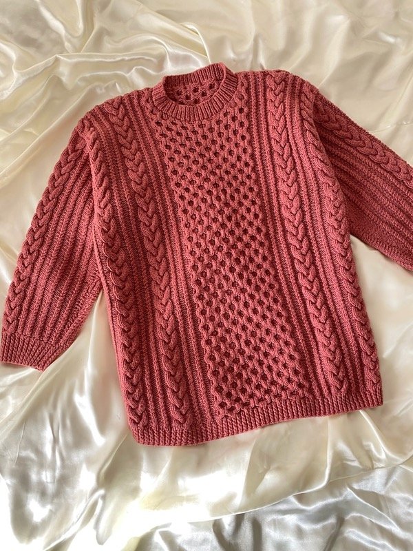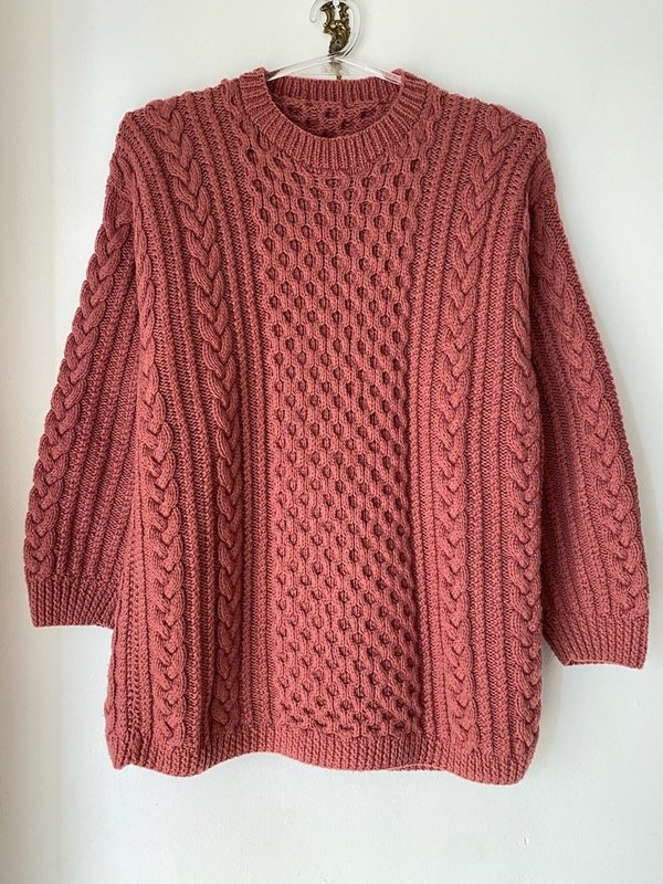 Sweater vintage tejido a mano de lana gruesa color rosa viejo