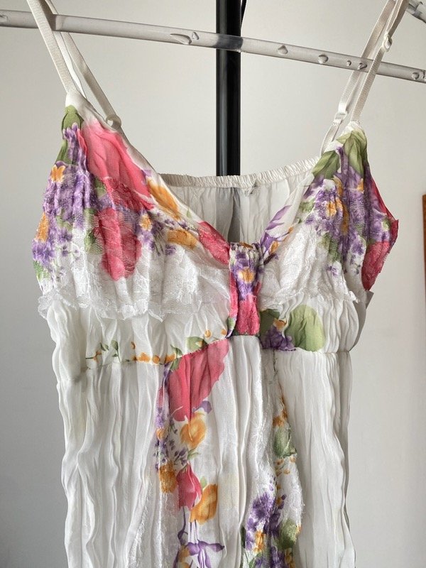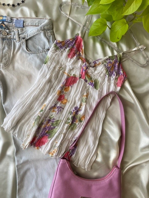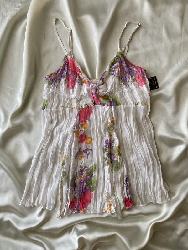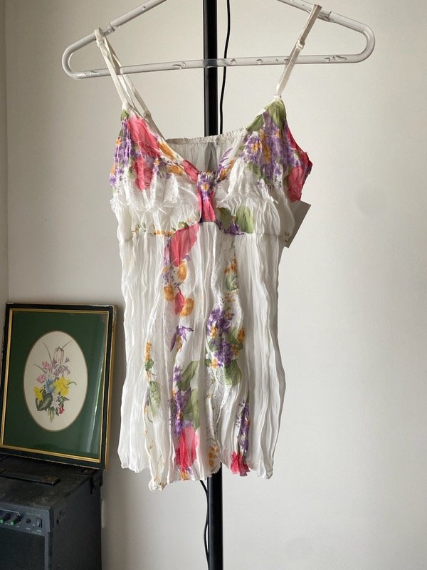 Top de gasa arrugada con detalles de puntilla, forrado en el escote, tortas regulables