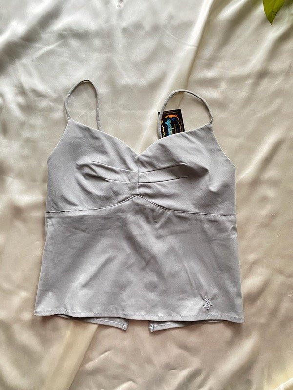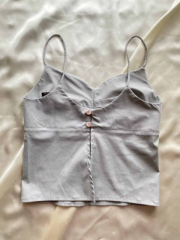 Top de la marca Mab elastizado la tela es tipo bengalina elastica pero firme, gris claro, cin botones en espalda