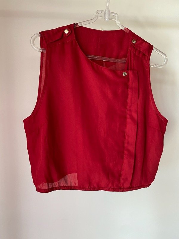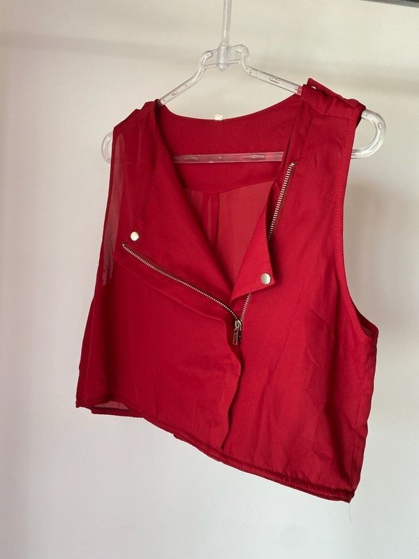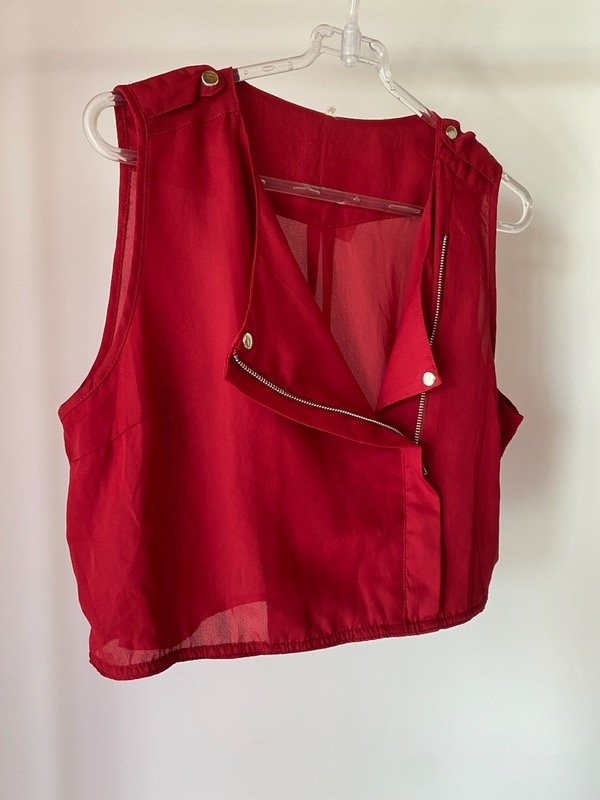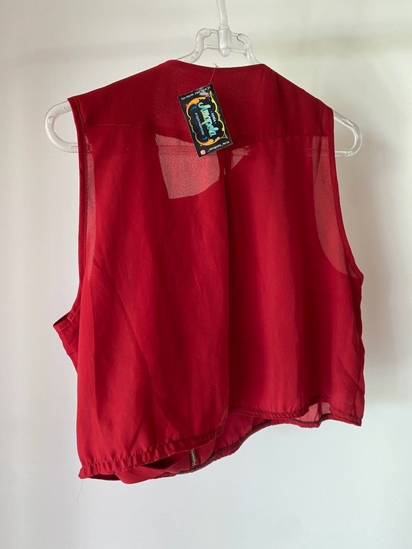 Top rojo a la cintura tipo chaleco, de gasa, rojo oscuro