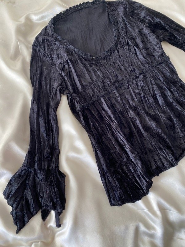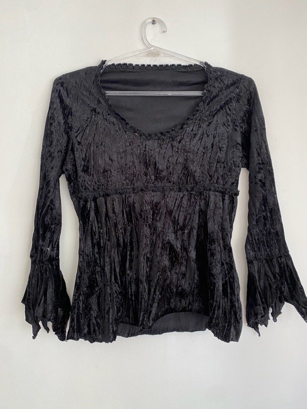 Remera manga 3/4 dé chifon con picos en mangas, ajuste abajo del busto